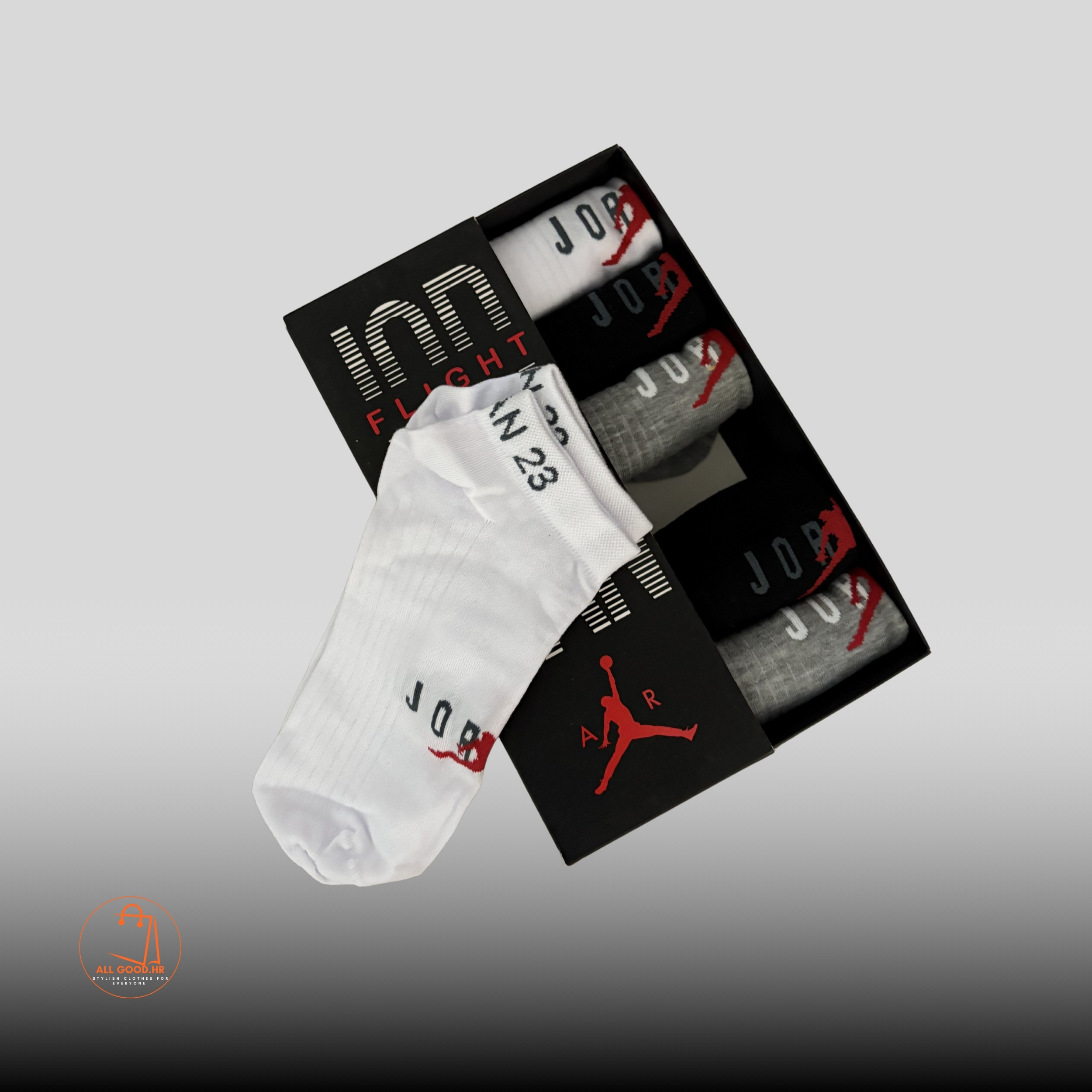 Sportski paket čarapa s legendarnim Air Jordan logom. U pakiranju je 6 pari u tri klasične boje – savršene za ljubitelje košarke i streetweara. Udobne i otporne.