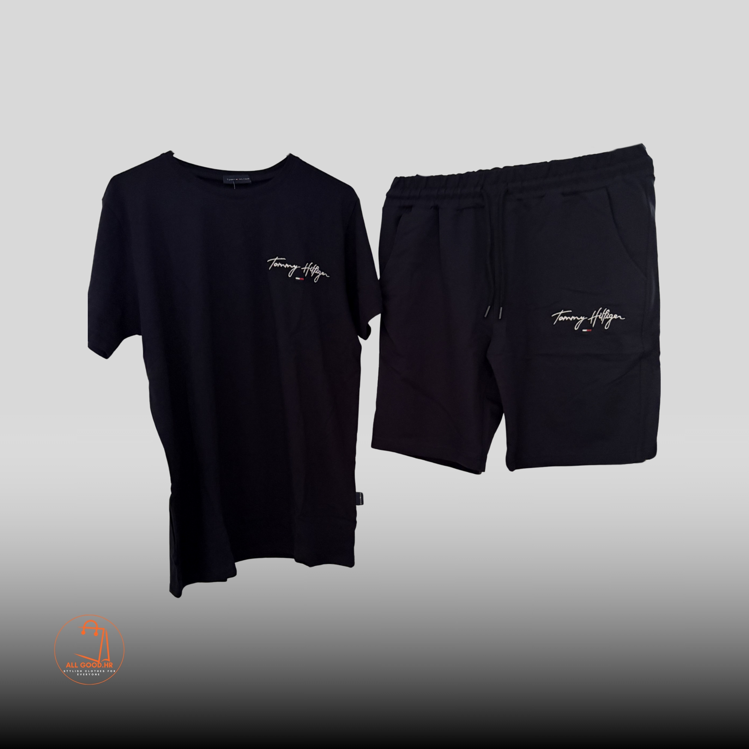 Tommy Hilfiger Muški Set – Crna Majica i Crne Kratke Hlače